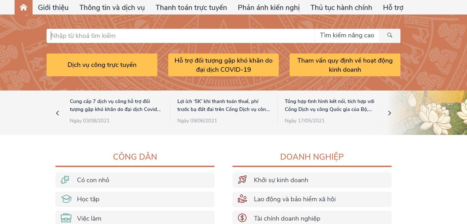 - Nghĩa vụ tài chính và thanh toán nghĩa vụ tài chính qua Cổng Dịch vụ công quốc gia.