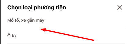 Bước 3 - Chọn phương tiện là Mô tô, xe gắn máy hoặc Ô tô.