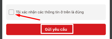 Bước tiếp theo là tích vào ô “Tôi xác nhận các thông tin ở trên là đúng”; nhấn nút “Gửi yêu cầu sau” khi đã kiểm tra và đảm bảo thông tin chính xác.