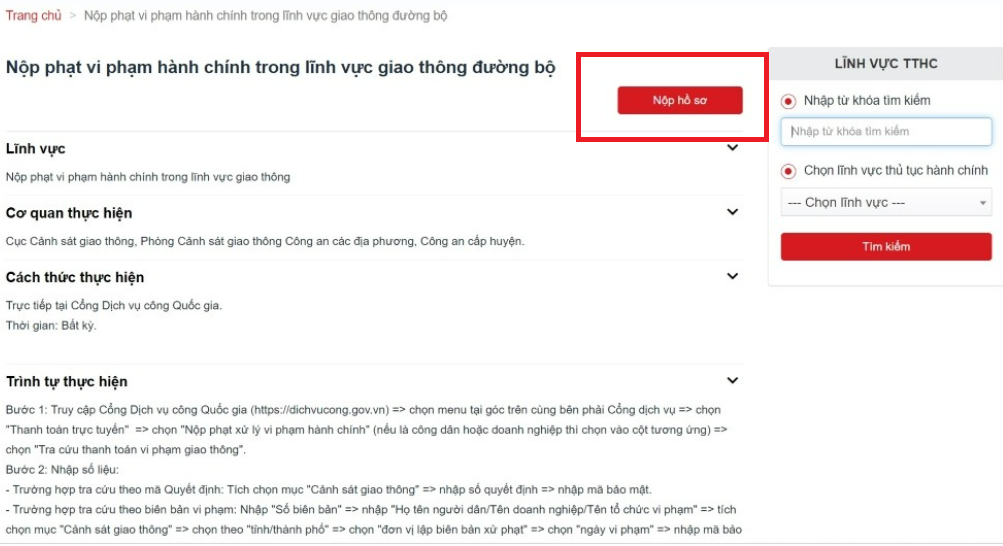 Bạn cũng có thể nộp phạt nguội thông qua Cổng Dịch vụ công Quốc gia theo hướng dẫn dưới đây: