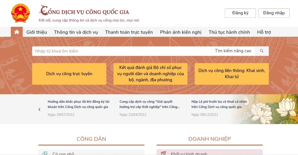 Đầu tiên, bạn truy cập địa chỉ http://dichvucong.gov.vn/.