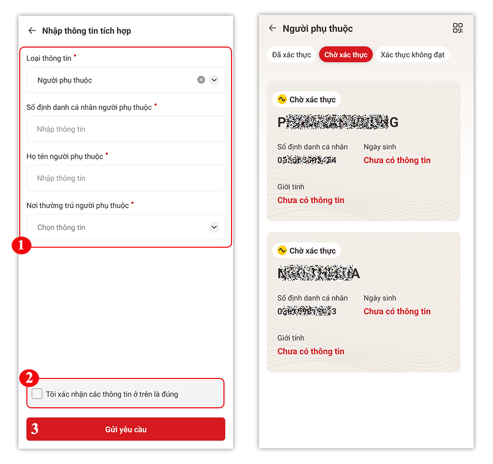 Bước 3: Nhập thông tin cá nhân của người phụ thuộc.