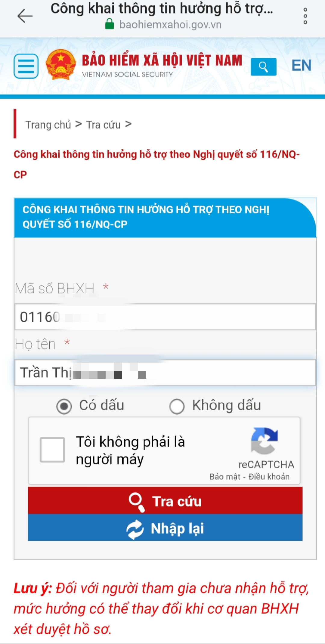 Cách tra cứu mức hưởng Nghị quyết 116 qua Cổng thông tin BHXH Việt Nam