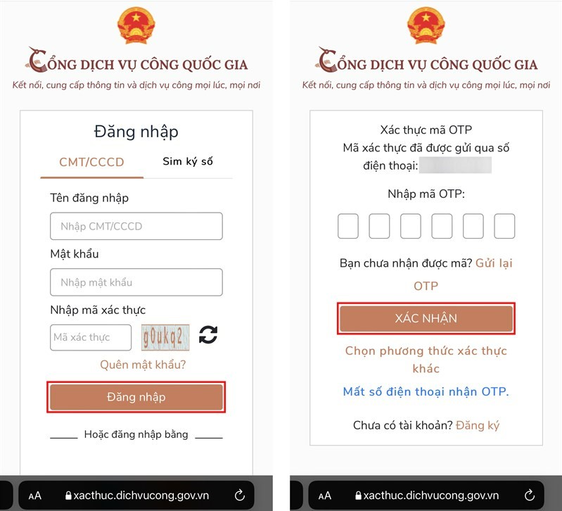 Tiếp theo, đăng nhập bằng tài khoản Cổng dịch vụ công quốc gia của mình.