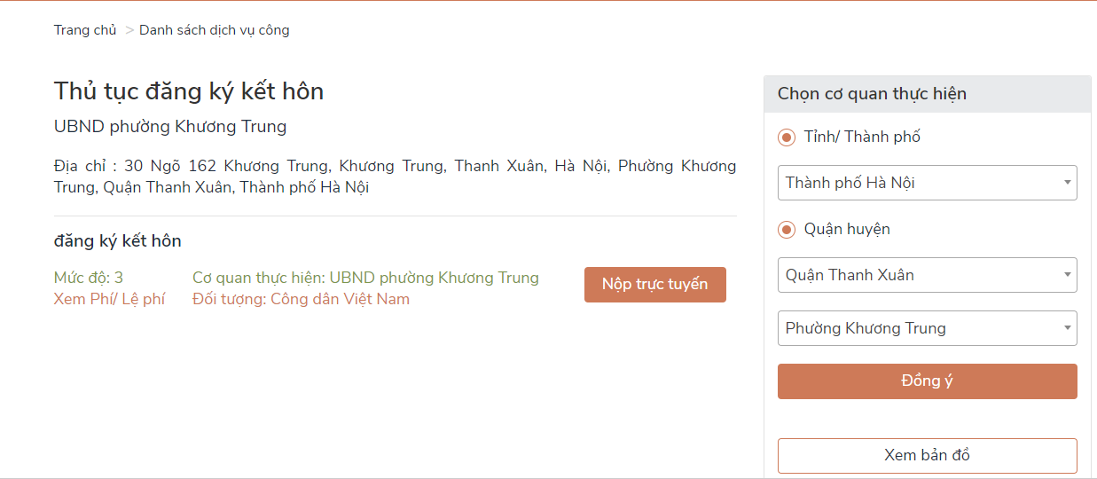 Khi hệ thống chuyển sang trang Nộp hồ sơ trực tuyến, bạn thực hiện như Bước 3, Bước 4 bên trên.Trên đây là hướng dẫn đăng ký kết hôn online Hà Nội mới nhất. Nếu chưa thực hiện được, bạn vui lòng liên hệ