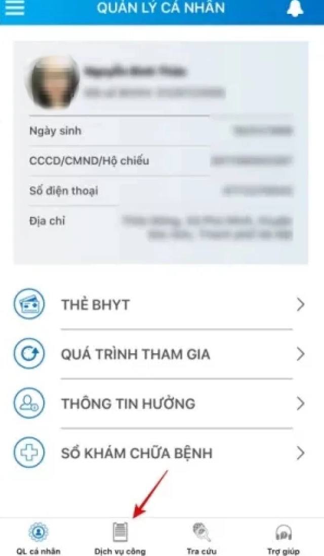 Sau khi đã tải và đăng nhập vào ứng dụng VssID, người dùng chọn mục “Dịch vụ công”.