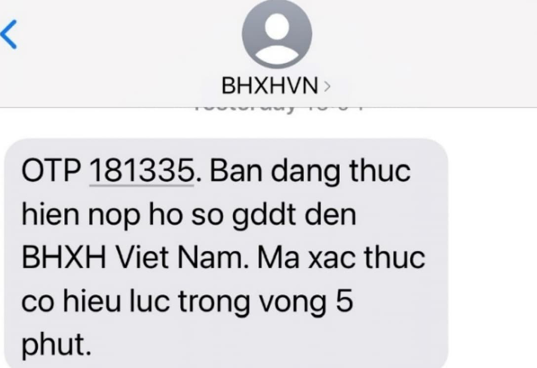 Bước 4: Bảo hiểm xã hội Việt Nam sẽ gửi mã OTP về số điện thoại của người dùng.