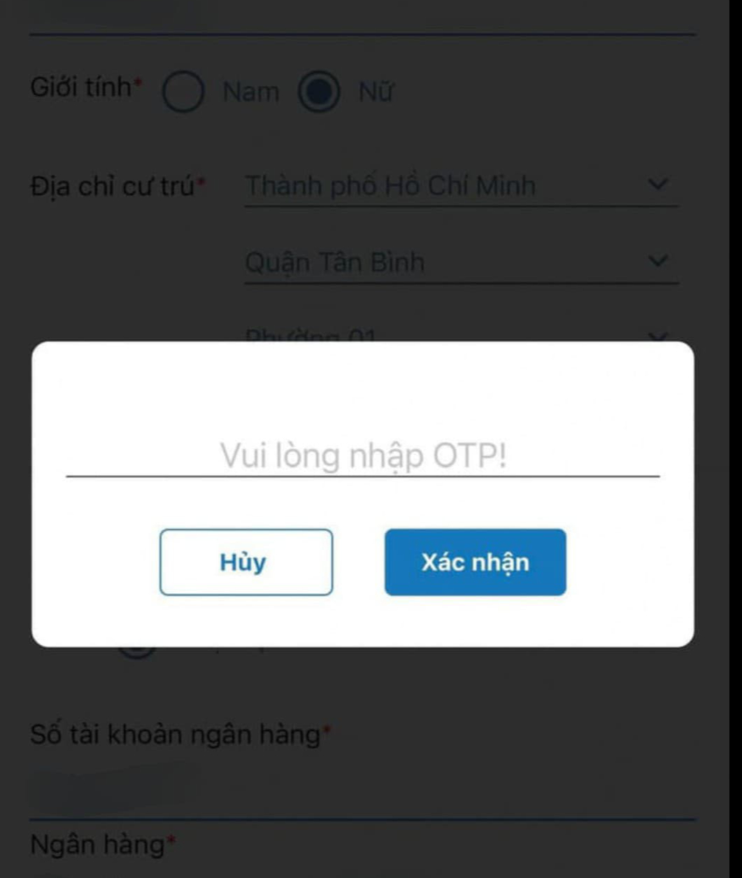 Bước 5: Nhập mã OTP trên ứng dụng bấm Xác nhận.