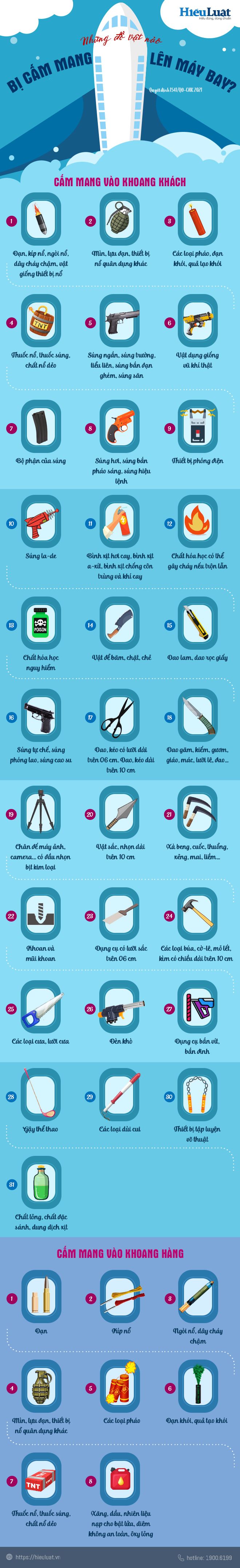 Hiện nay, pháp luật quy định rất rõ những đồ vật không được mang lên máy bay khoang hành khách và những vật không được ký gửi trong khoang hàng.