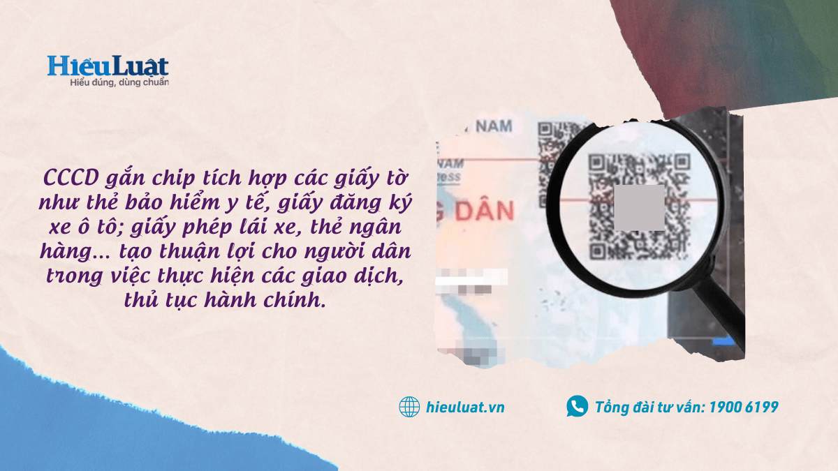 Hiện nay, bên cạnh tài khoản định danh điện tử thì CCCD gắn chip cũng tích hợp các giấy tờ như thẻ bảo hiểm y tế, giấy đăng ký xe ô tô; giấy phép lái xe, thẻ ngân hàng… tạo thuận lợi cho người dân trong việc thực hiện các giao dịch, thủ tục hành chính.