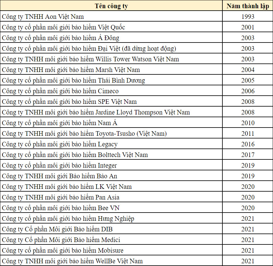 Danh sách công ty môi giới bảo hiểm tại Việt Nam