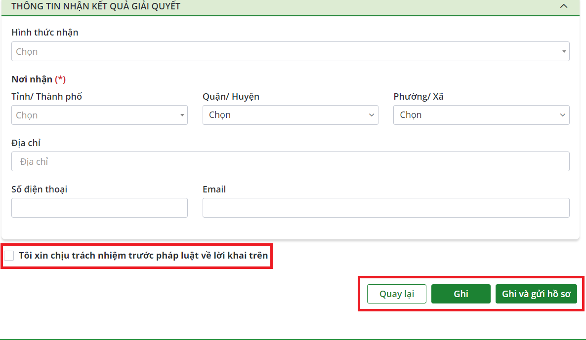 - Với kết quả giải quyết có thể nhận trực tiếp, qua Email hoặc qua cổng thông tin.