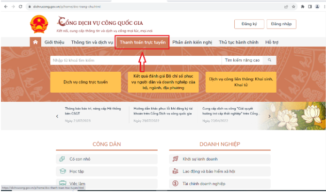 Bước 1: Đăng ký thông tin trên Cổng dịch vụ công quốc gia tại trang web https://dichvucong.gov.vn