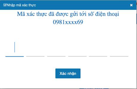 Bước 5: Khi điền đủ thông tin, hệ thống sẽ gửi mã xác thực gồm 6 chữ số về số điện thoại đã đăng ký, nhập mã xác thực và chọn “xác nhận” để hoàn tất thủ tục đăng ký. Hệ thống sẽ thông báo thủ tục đã hoàn tất.