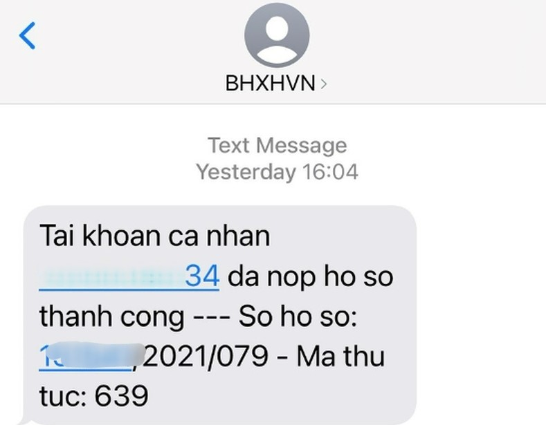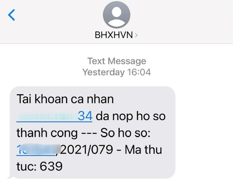 BHXH Việt Nam sẽ gửi tin nhắn thông báo tài khoản cá nhân đã nộp hồ sơ thành công đến điện thoại người dùng.