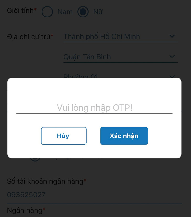 Nhập mã OTP trên ứng dụng và bấm Xác nhận.
