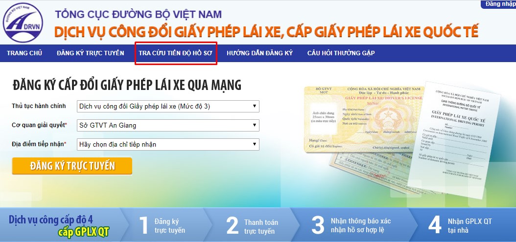 Bạn có thể vào website đổi GPLX để tra cứu tiến độ sau khi đã đăng ký thủ tục thành công khoảng 2-3 ngày.