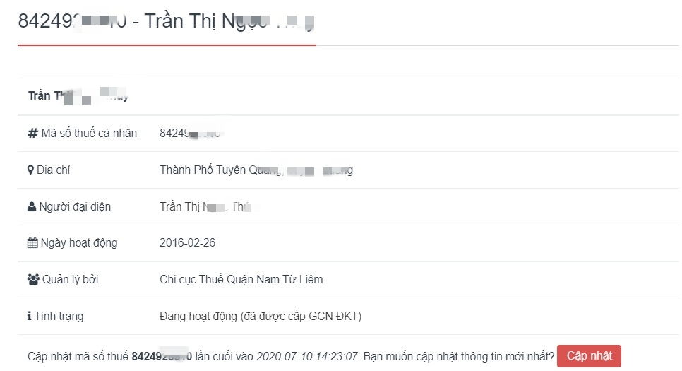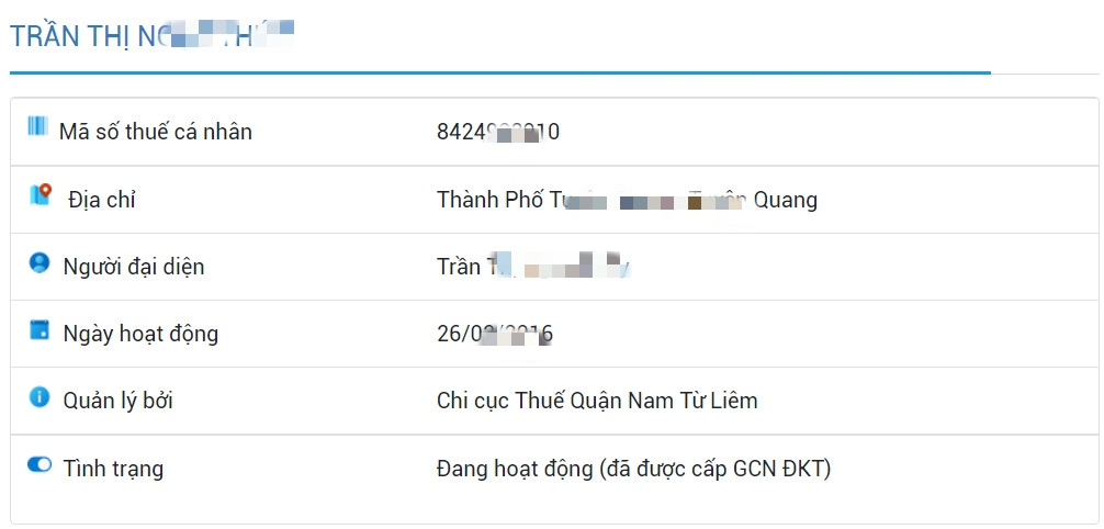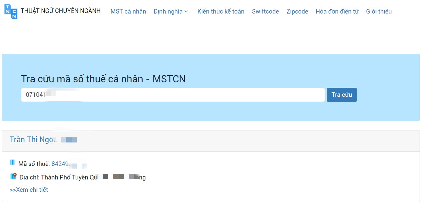 - Kết quả mã số thuế cá nhân sẽ được hiển thị các thông tin, bao gồm:
