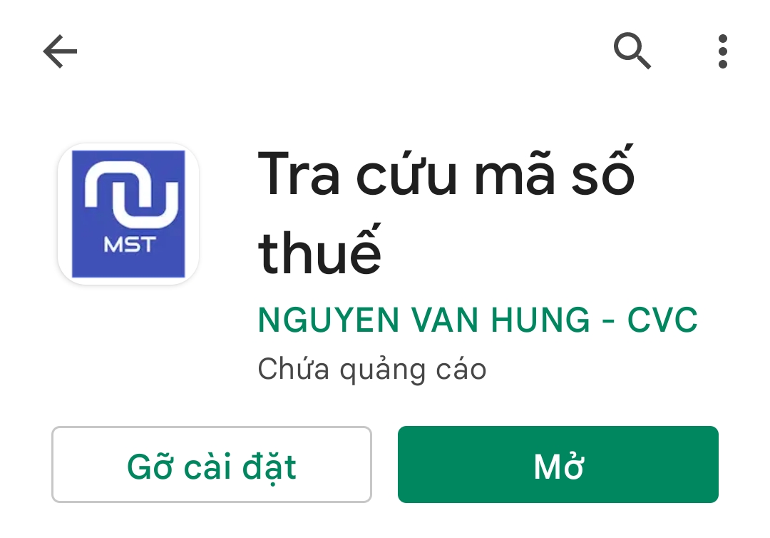 - Truy cập vào Google Play, tải và cài đặt ứng dụng Tra cứu mã số thuế về điện thoại.