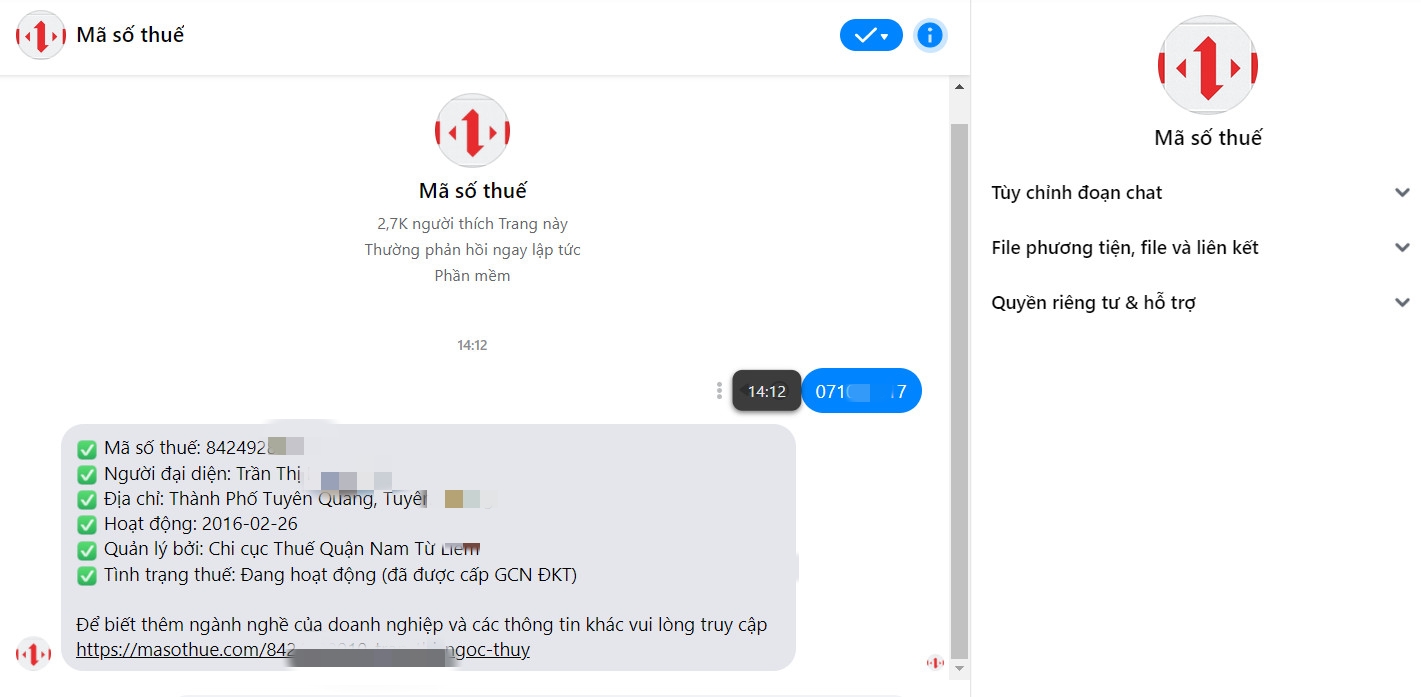 Tra cứu mã số thuế thu nhập cá nhân qua Facebook Messenger