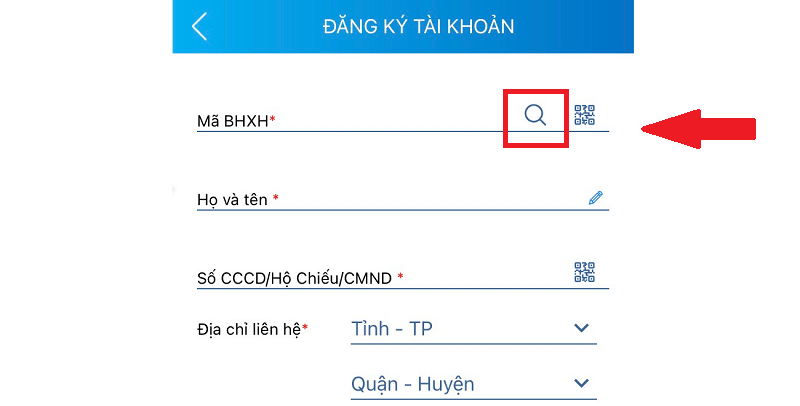 Bấm vào biểu tượng kính lúp để tra cứu mã BHXH đang sử dụng