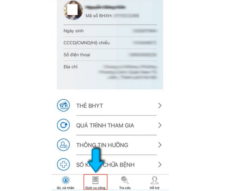Bước 2: Chọn mục Dịch vụ công trên thanh công cụ góc dưới cùng màn hình.