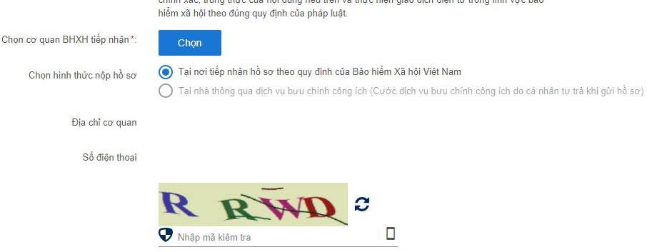 Bước 5: Sau khi đã hoàn thành bước 4 và nhấn Tiếp tục, bạn cần phải chọn Cơ quan Bảo hiểm xã hội tiếp nhận để gửi hồ sơ về khu vực đó chờ duyệt.
