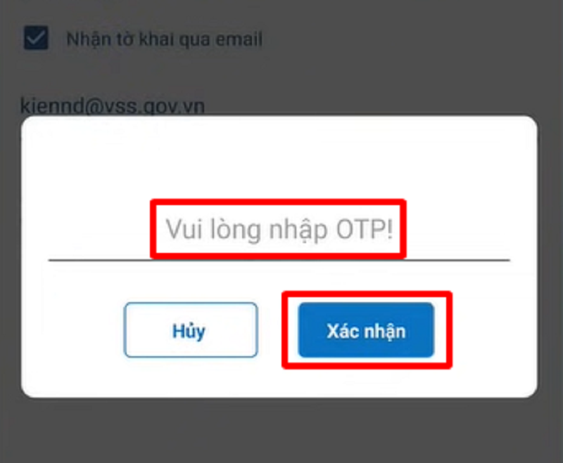 Bước 6: Sau khi hoàn tất bấm Gửi, hệ thống sẽ gửi cho bạn một mã OTP về số điện thoại đã đăng ký và yêu cầu xác nhận.