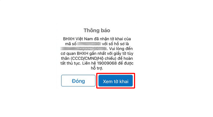 Bước 7: Khi đã xác nhận xong mã OTP, tờ khai của bạn đã được hoàn thành và gửi cho cơ quan của Bảo hiểm xã hội Việt Nam. Hệ thống thông báo đã tiếp nhận tờ khai và thông tin liên hệ khi cần hỗ trợ.