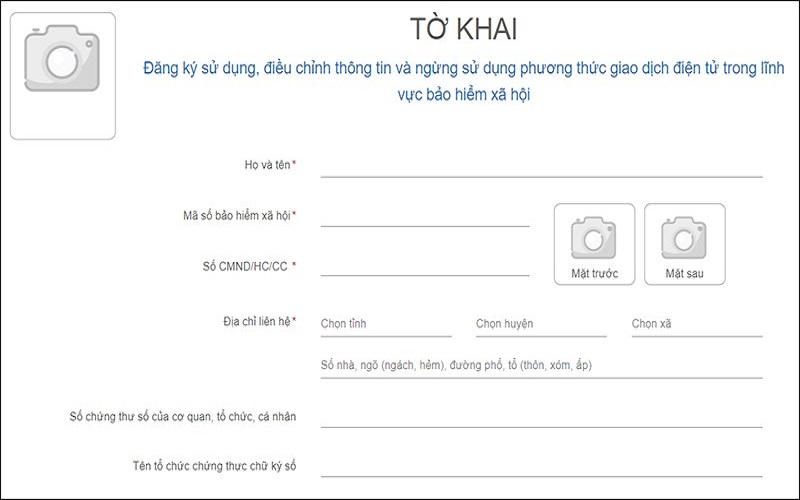 Bước 3: Giao diện sẽ hiện ra biểu mẫu tờ khai chứa các thông tin cần điền. Việc của người dùng là điền đầy đủ và chính xác các thông tin cá nhân để cung cấp cho hệ thống xác lập tài khoản bảo hiểm xã hội điện tử.