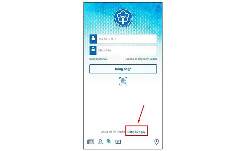 Bước 1: Mở ứng dụng VssID trên thiết bị. Nhấn vào dòng chữ Đăng ký ngay trên màn hình đăng nhập.