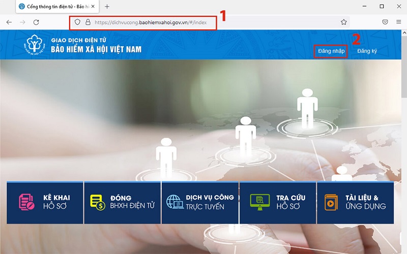 Bước 1: Cũng giống như bước đầu tiên của phần cập nhật các thông tin khác đã hướng dẫn ở trên, việc đầu tiên người dùng cần làm là truy cập vào website dichvucong.baohiemxahoi.gov.vn.