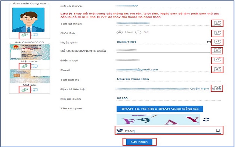 Bước 3: Nhập mã kiểm tra sau đó chọn ghi nhận như các cách chỉnh sửa thông tin khác đã đề cập ở phần trên.