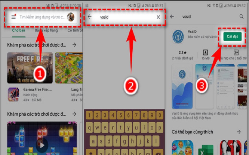 Bước 1: vào ứng dụng Google Play trên điện thoại và nhập VssID vào thanh công cụ tìm kiếm, chọn ứng dụng VssID của BHXH Việt Nam, nhấn cài đặt để tải về. Ứng dụng sẽ mất vài phút để cập nhật thành công
