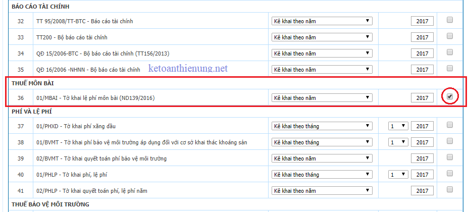 Bước 2: Tích chọn mục “01/MBAI – Tờ khai lệ phí môn bài (ND 139.2016)”, sau đó ấn Tiếp Tục và Chấp thuận.