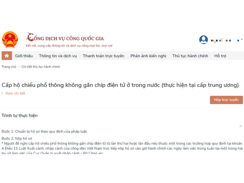 Làm hộ chiếu online thông qua Cổng dịch vụ công quốc gia