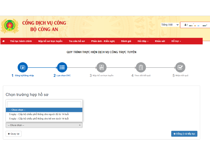 Bước 4: Nhập các thông tin cần thiết và nộp hồ sơ tương ứng theo hướng dẫn của Bộ Công an.