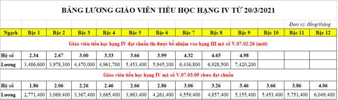 Câu hỏi: Cho tôi hỏi có phải từ ngày 20/3/2021 không còn giáo viên mầm non và giáo viên tiểu học hạng IV nữa phải không ạ?Trả lời: