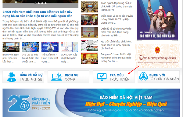 Bước 1: Truy cập Cổng thông tin điện tử của BHXH Việt Nam: https://baohiemxahoi.gov.vn/Pages/default.aspx