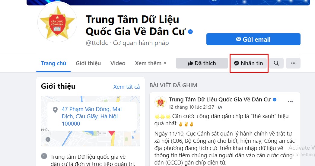 Ngoài ra, Fanpage “Trung tâm Dữ liệu quốc gia về dân cư” cũng thường xuyên cập nhật vấn đề liên quan đến tính năng, ưu điểm và tiện ích của thẻ Căn cước công dân gắn chip. Người dân có thể ấn Thích trang để thường xuyên cập nhật những thông tin này.
