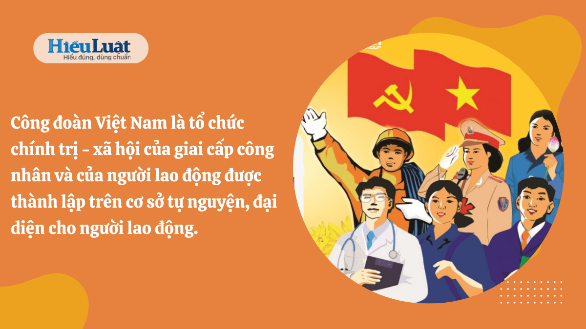 Theo Điều 1 Luật Công đoàn 2012 thì công đoàn là tổ chức chính trị - xã hội rộng lớn của giai cấp công nhân và của người lao động, được thành lập trên cơ sở tự nguyện, là thành viên trong hệ thống chính trị của xã hội Việt Nam, dưới sự lãnh đạo của Đảng Cộng sản Việt Nam;