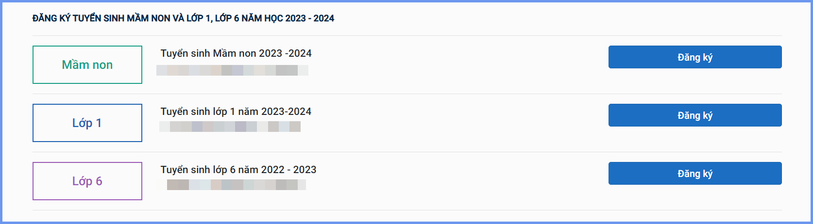 Kỳ Tuyển sinh là Lớp 1 hoặc Lớp 6